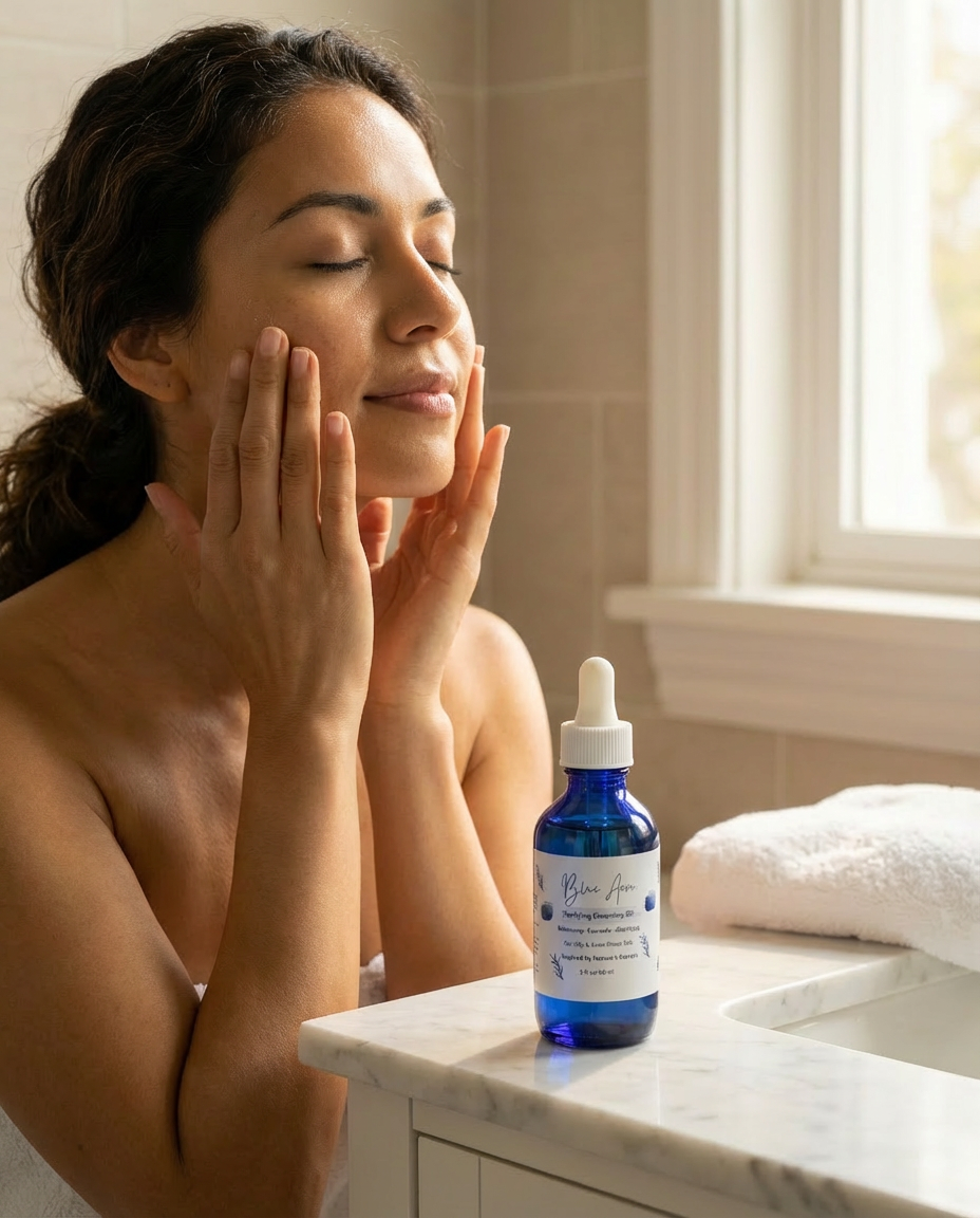 Blue Aeon Purifying Nourishing Cleansing Oil for Oily & Acne-Prone Skin is a lightweight, hand-crafted oil cleanser created to dissolve excess sebum, makeup, and daily impurities while respecting the skin’s natural balance. Eye-safe and thoughtfully formulated, it cleanses thoroughly without over-drying—leaving skin feeling fresh, clear, and comfortable.