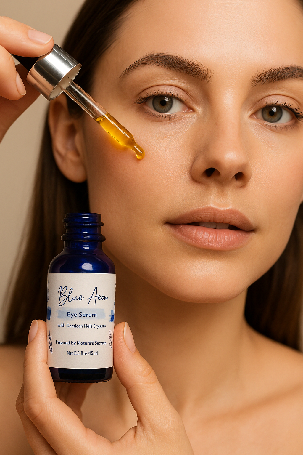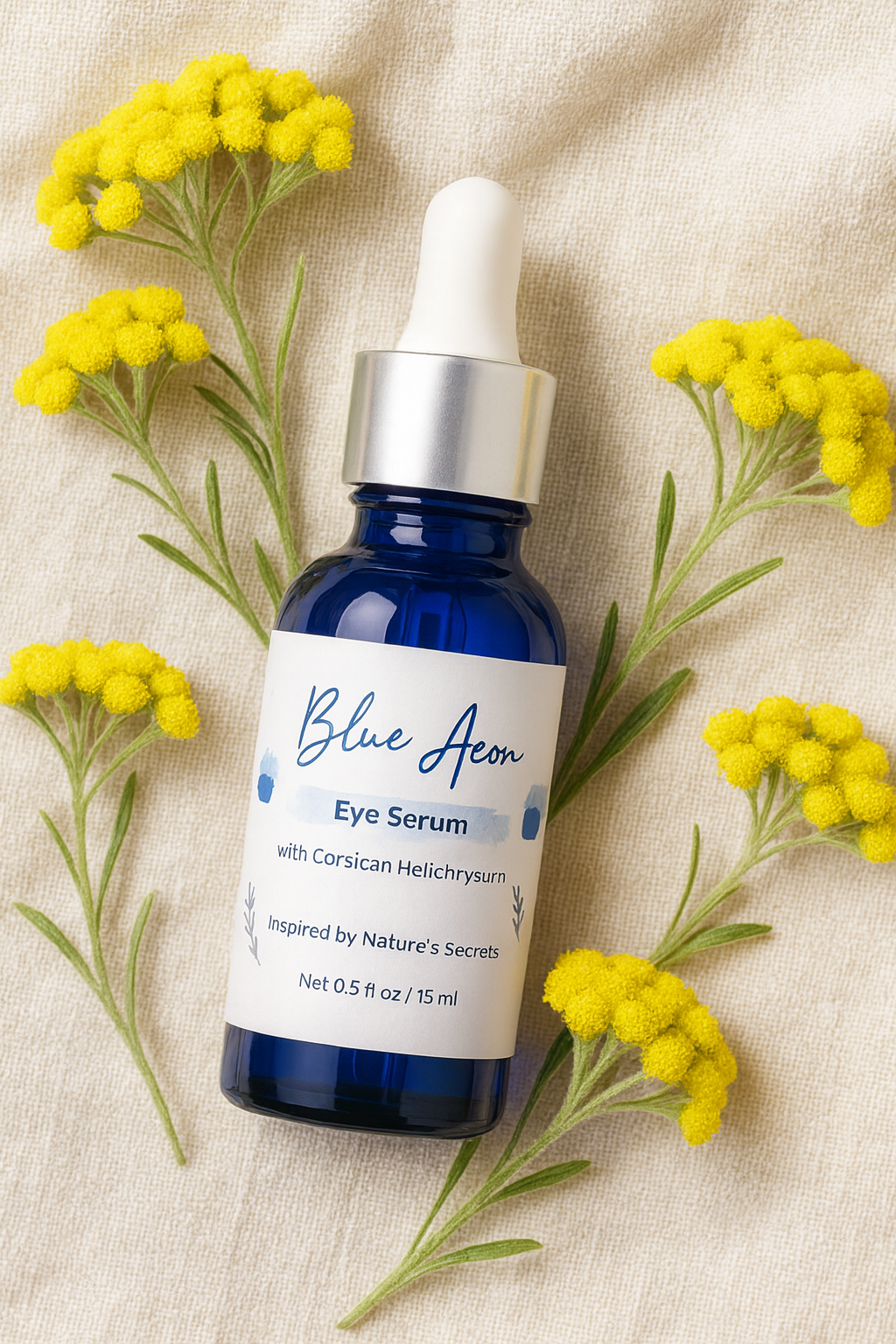 A concentrated, fast-absorbing blend designed to visibly reduce the look of dark circles and revive the delicate under-eye area. This luxurious serum features rosehip seed oil, naturally rich in provitamin A and essential fatty acids that support an even, luminous tone. Its star note, Corsican Helichrysum (Helichrysum italicum) essential oil, is regarded as the most prized H. italicum variety for its exceptional regenerative and soothing qualities—grown in the sun-drenched hills of Corsica to promote renewal and calm the look of tired skin.