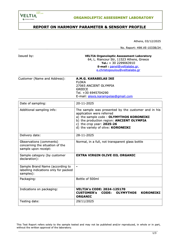 A smooth, late-harvest extra virgin olive oil from the historic region of Ancient Olympia, crafted for those who appreciate a more delicate and approachable flavor profile.