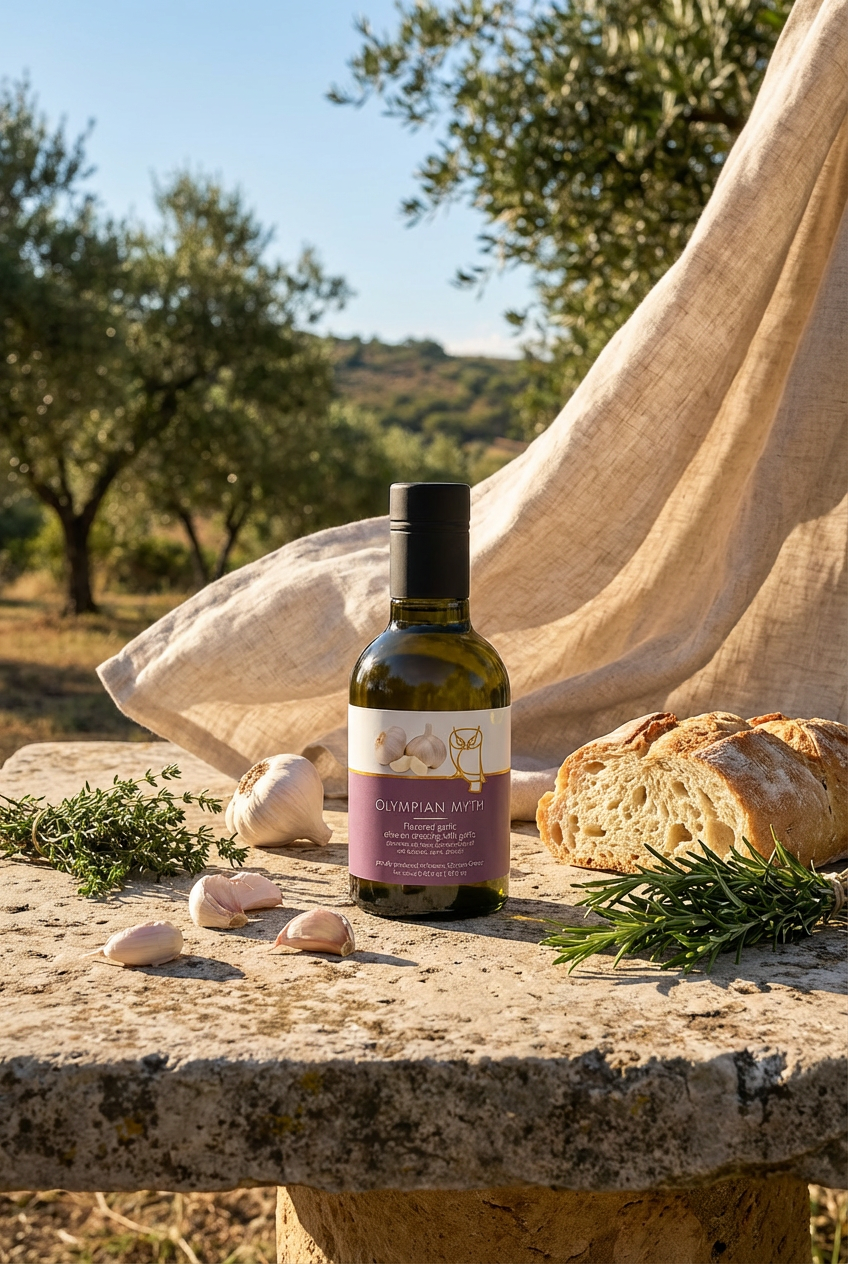Olympian Myth Flavored Extra-Virgin Olive Oil Garlic, 250 ml (8.45 fl oz)