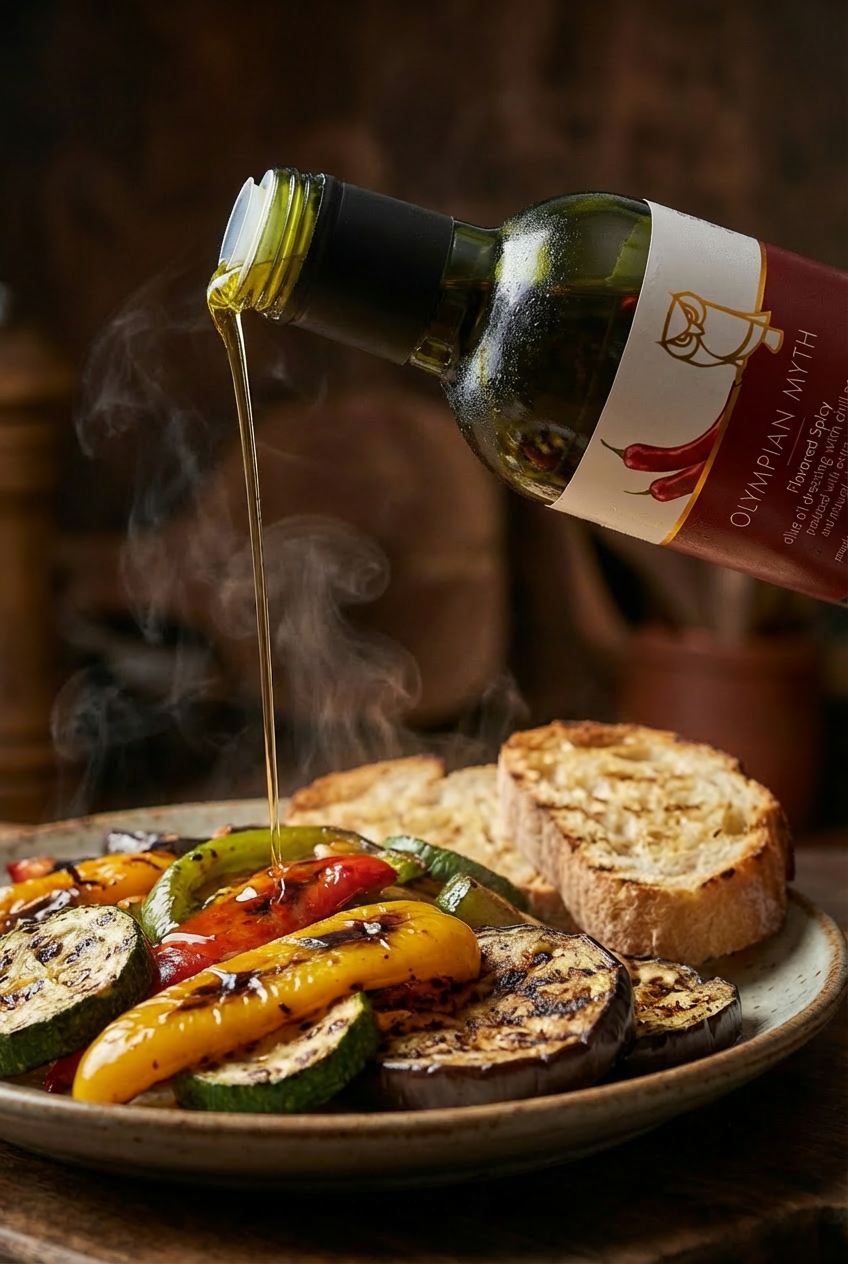 * A hot pepper olive oil dressing has a very spicy character and is based on the famous Koroneiki variety extra virgin olive oil.